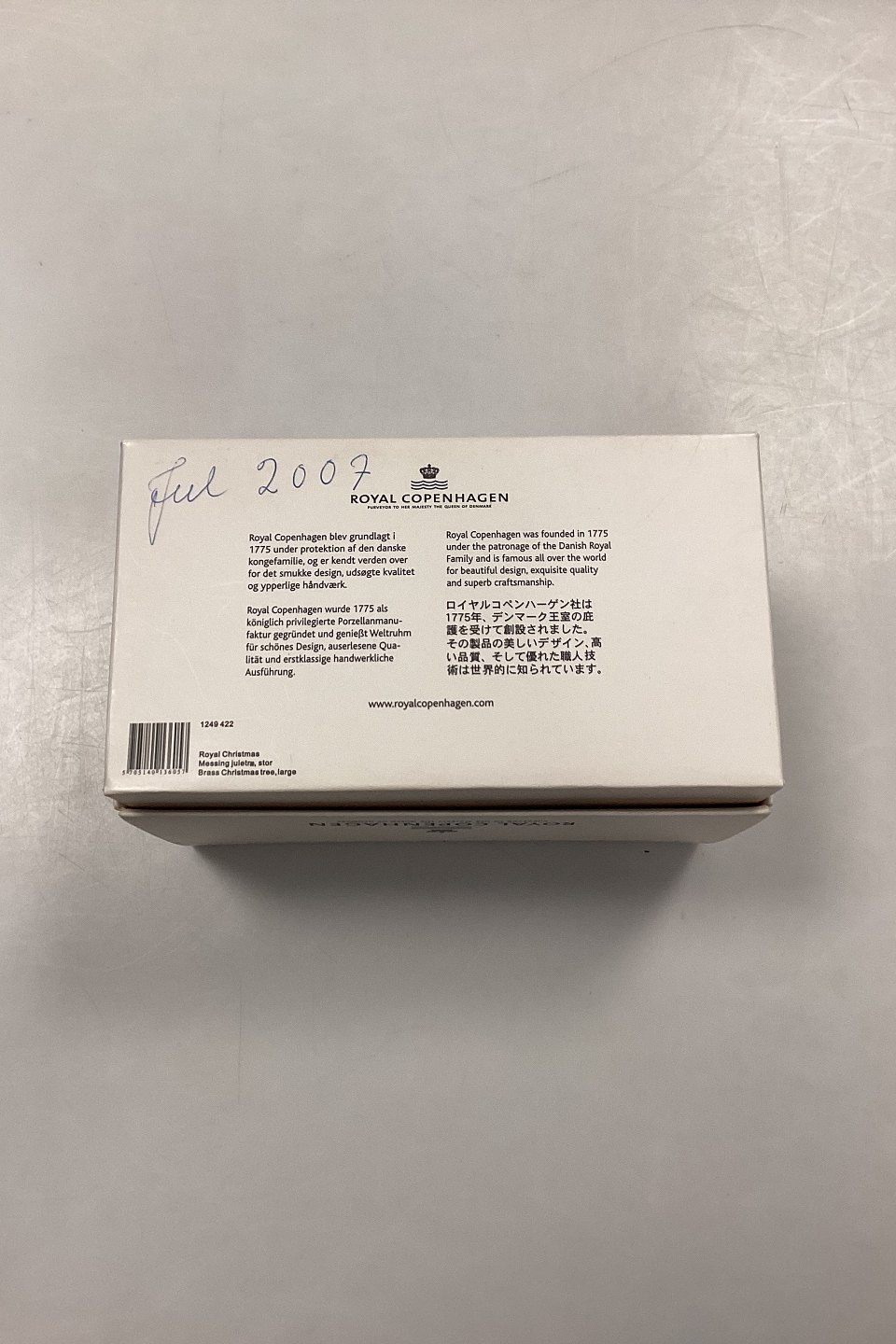 Royal Copenhagen Christmas Stort Juletræ. Bordpynt i messing med grøn emalje og hvide lys.