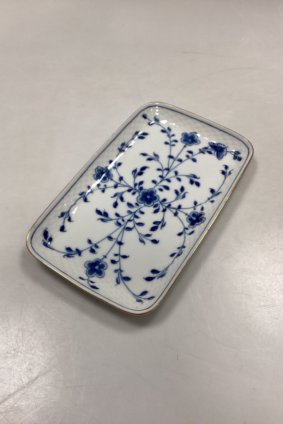 Bing og Grøndahl Sommerfugl, Guld Aflang Bakke, lille No. 216. Måler 21,5 cm x 13,2 cm / 8,46 in. x 5,19 in.