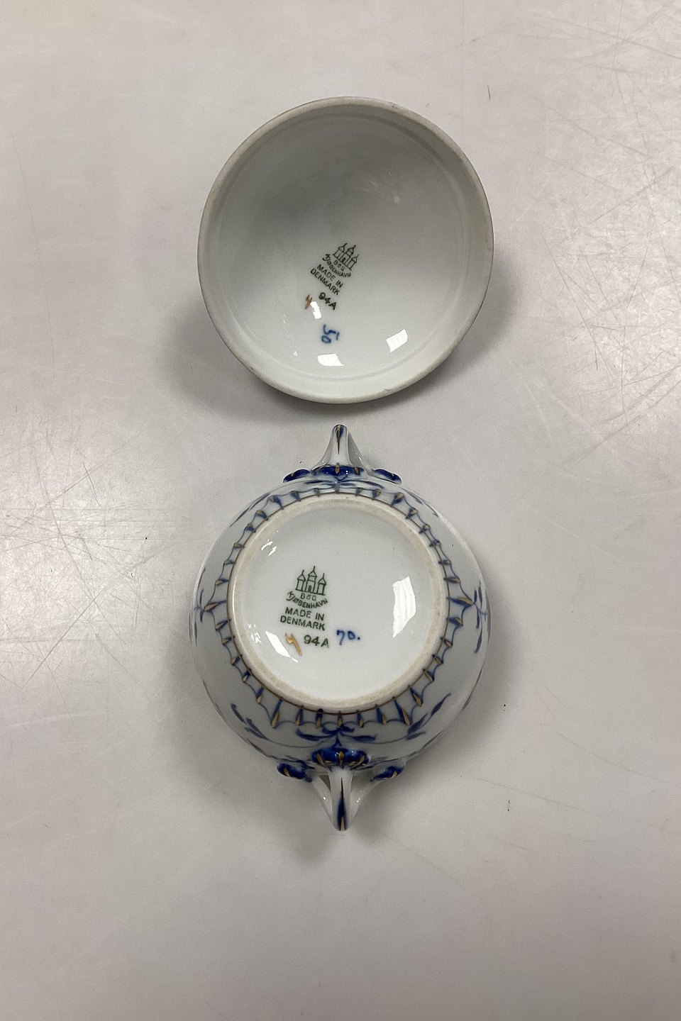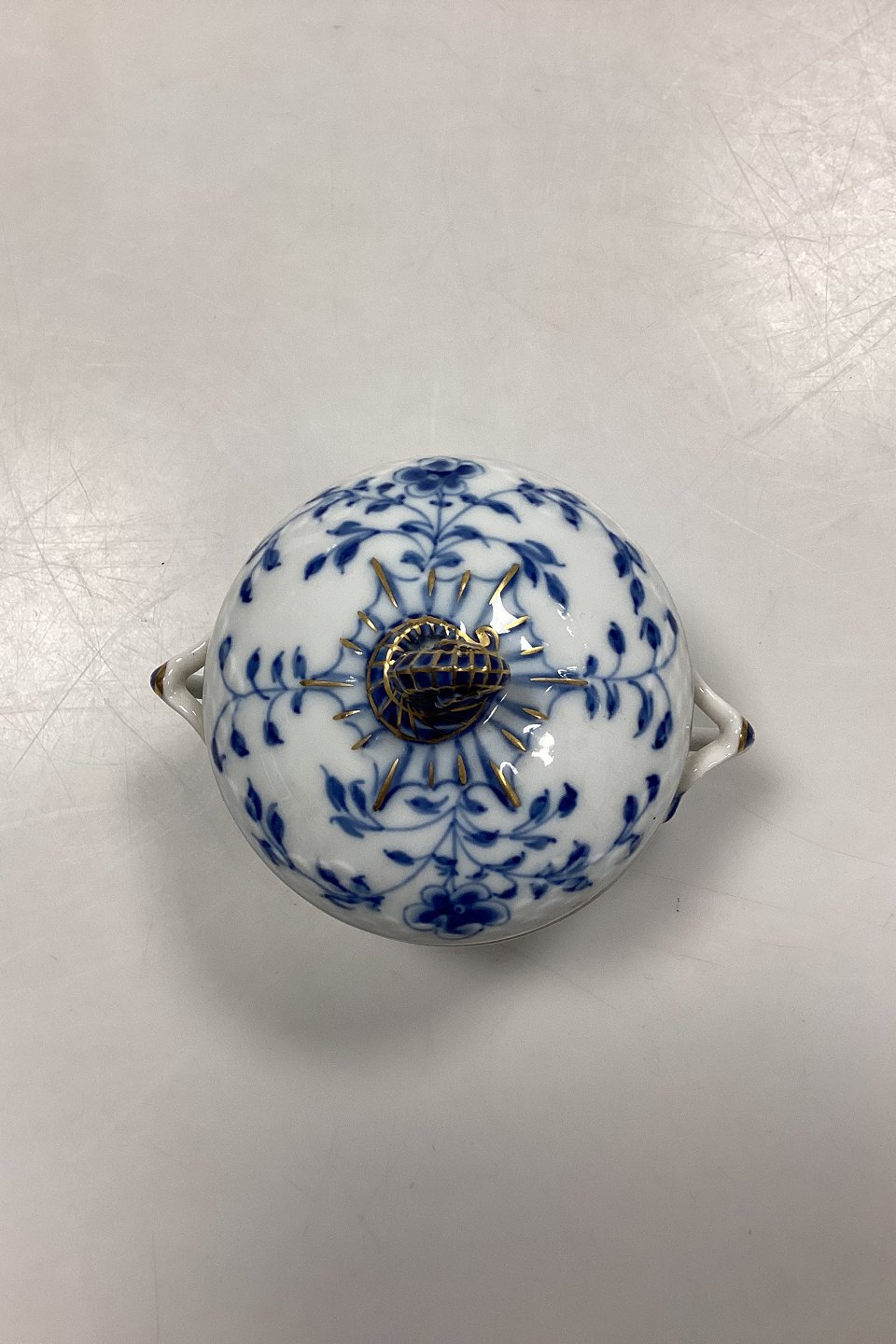 Bing og Grøndahl Sommerfugl, Guld Sukkerskål, mellem No. 94A. Måler 10,5 cm x 9 cm / 4,13 in. x 3,54 in.