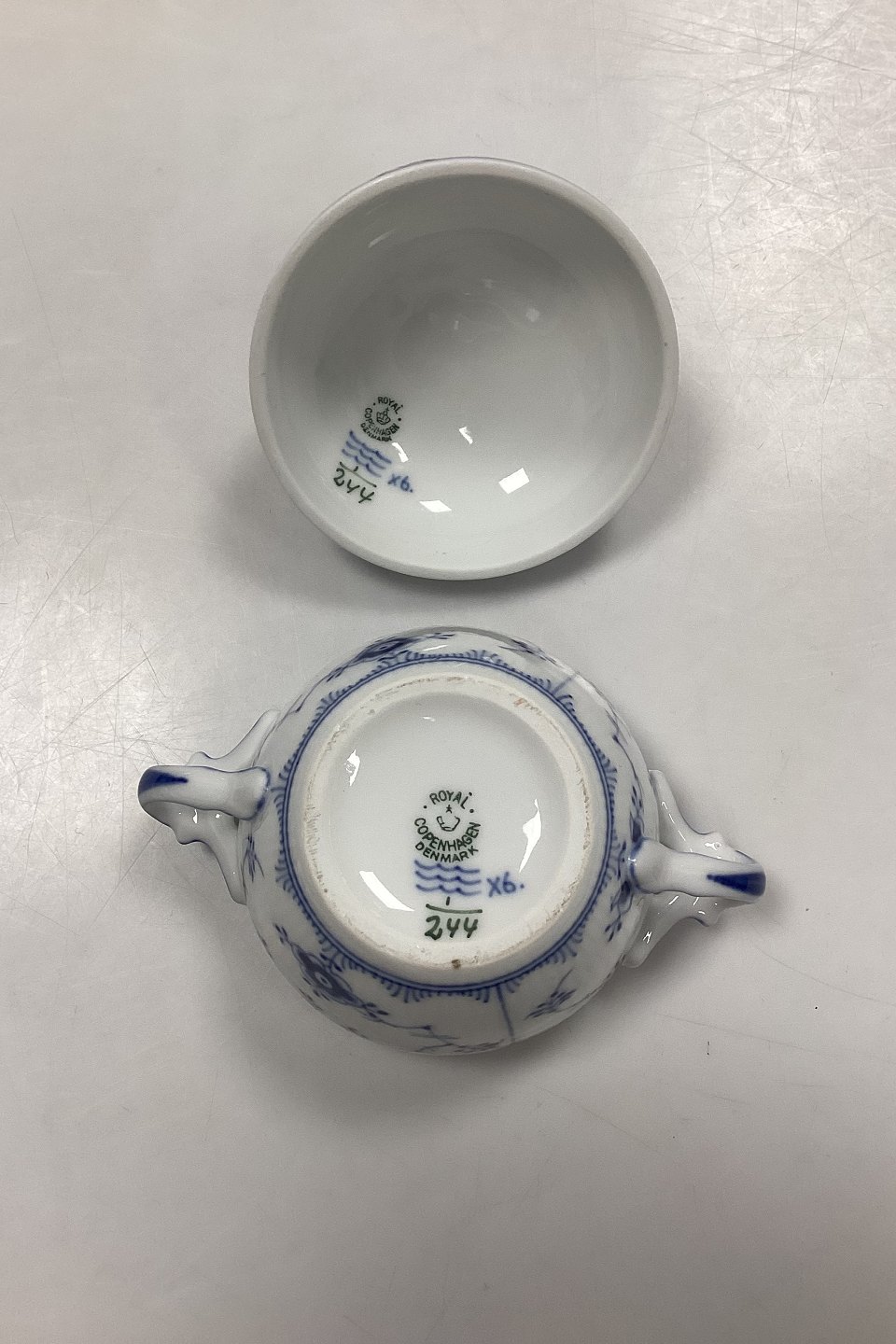 Royal Copenhagen Musselmalet Riflet Sukkerskål No. 244.