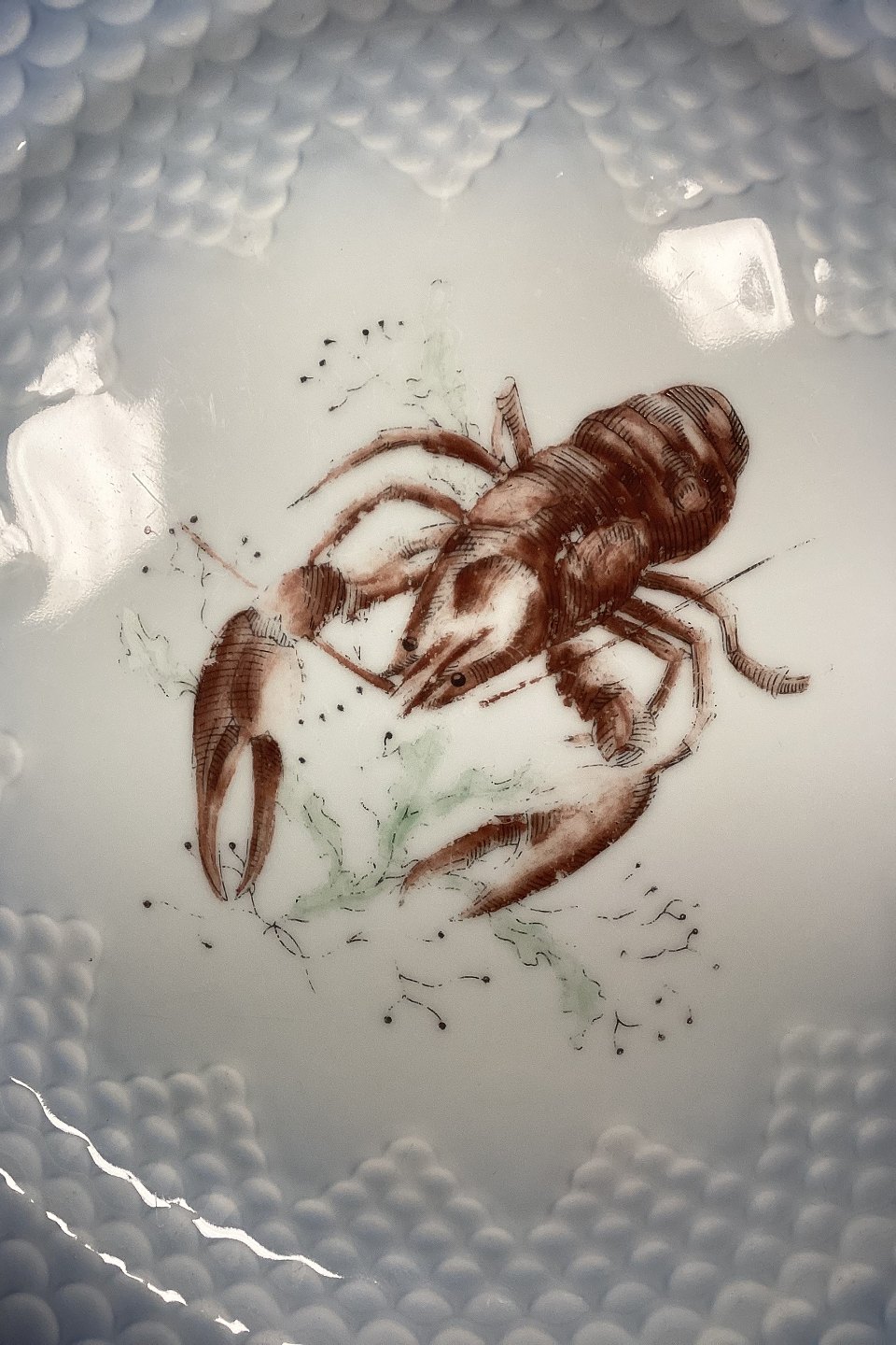 Bing og Grøndahl Blå Tone Fisketallerken Motiv 11 Krebs No. 716 - SKÅRET/SLIDT