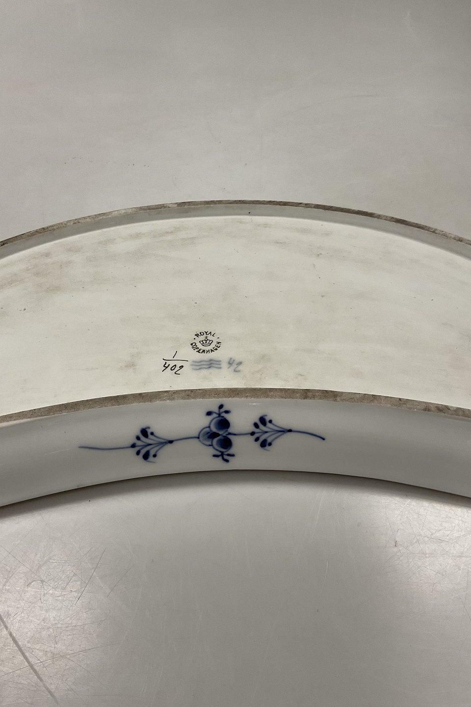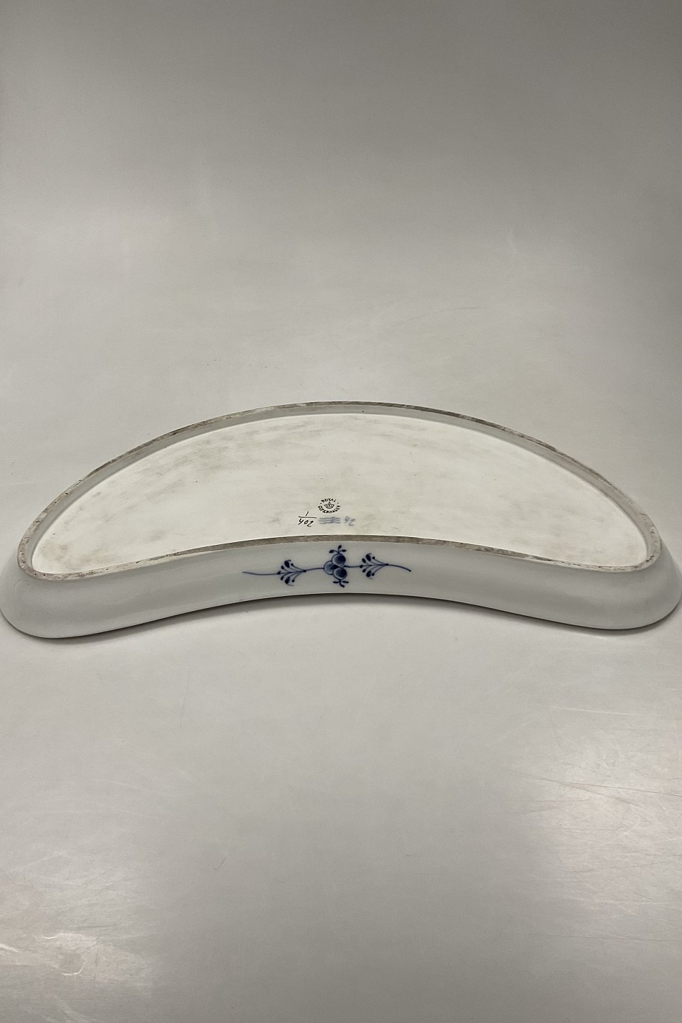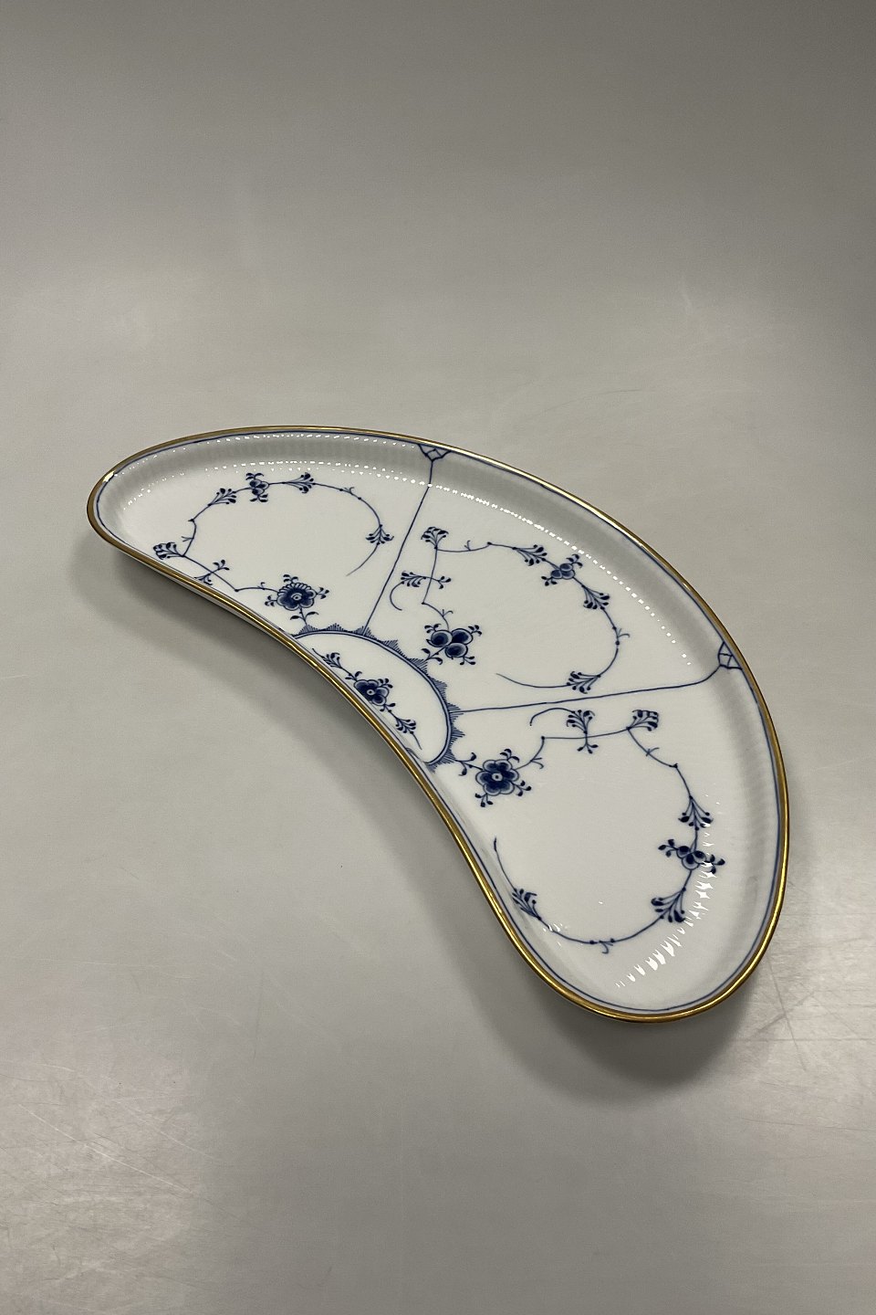 Royal Copenhagen Musselmalet Riflet Halvmåne Fad med Guld No. 402