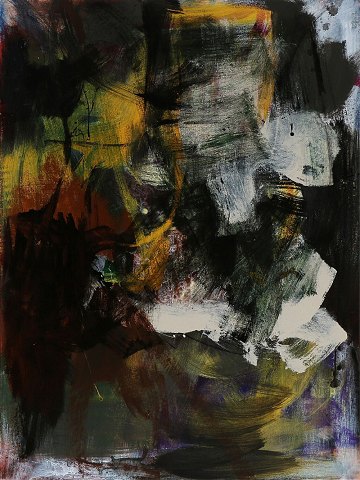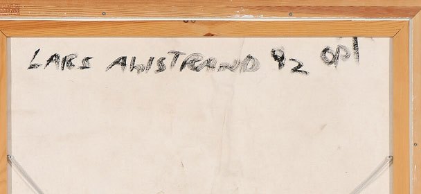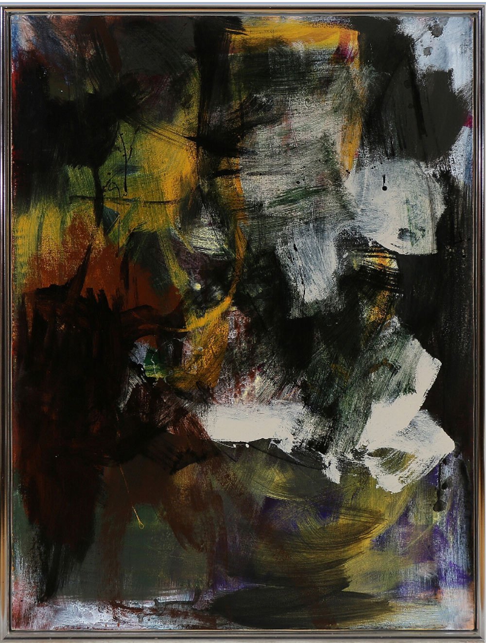 "Komposition" Stort flot maleri i sølv svæveramme.