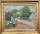 "Parti fra en landsby" Oliemaleri på lærred i forgyldt ramme. Maleriet er netop blevet renset og har fået slut fernis.