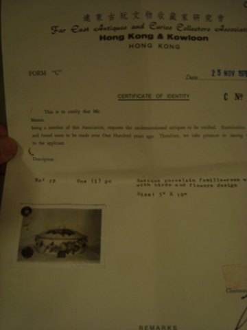 Fin antik lågfad fra Kina i perfekt stand, certifikat medfølger. H. 11 cm, D. 23 cm