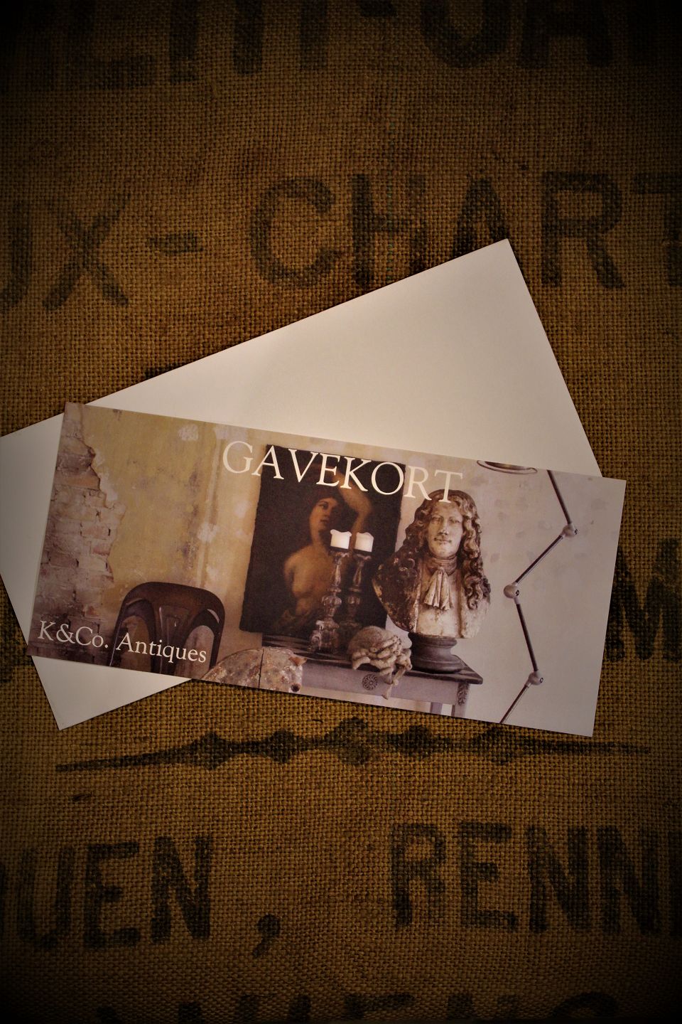 Gavekort til K&Co. Antiques. kan laves i butikken eller sendes mod aftale. Emne nummer: GAVEKORT