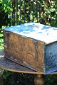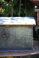 Svensk 1800 tals træ boks / skrin med original blå farve med en rigtig fin patina , smedejerns beslag og med nøgle.
