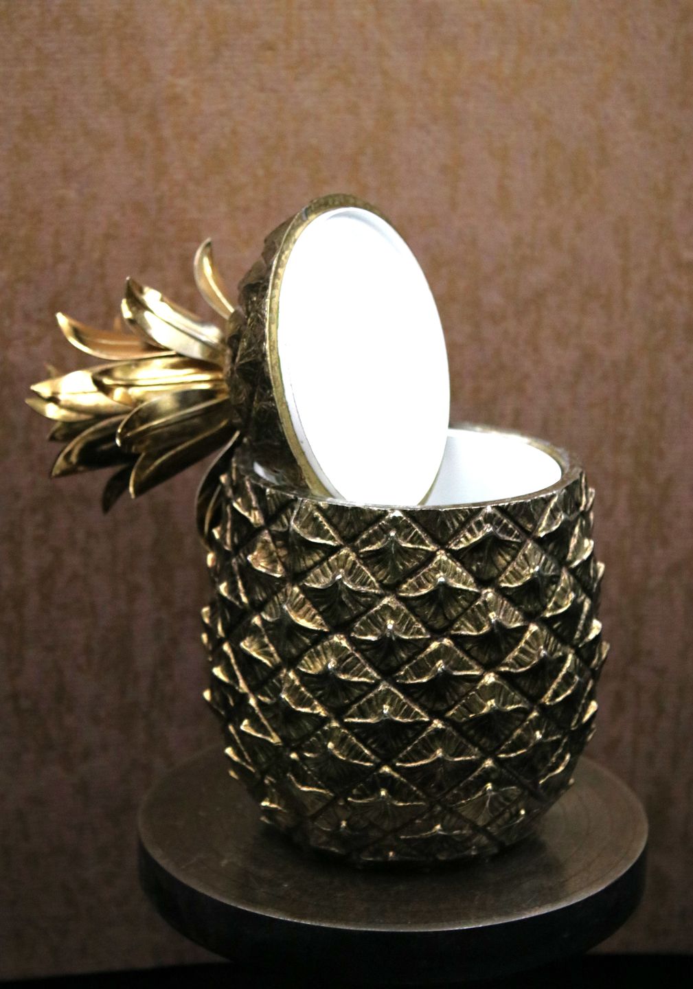 i form af ananas i forgyldt tin fra 60érne...