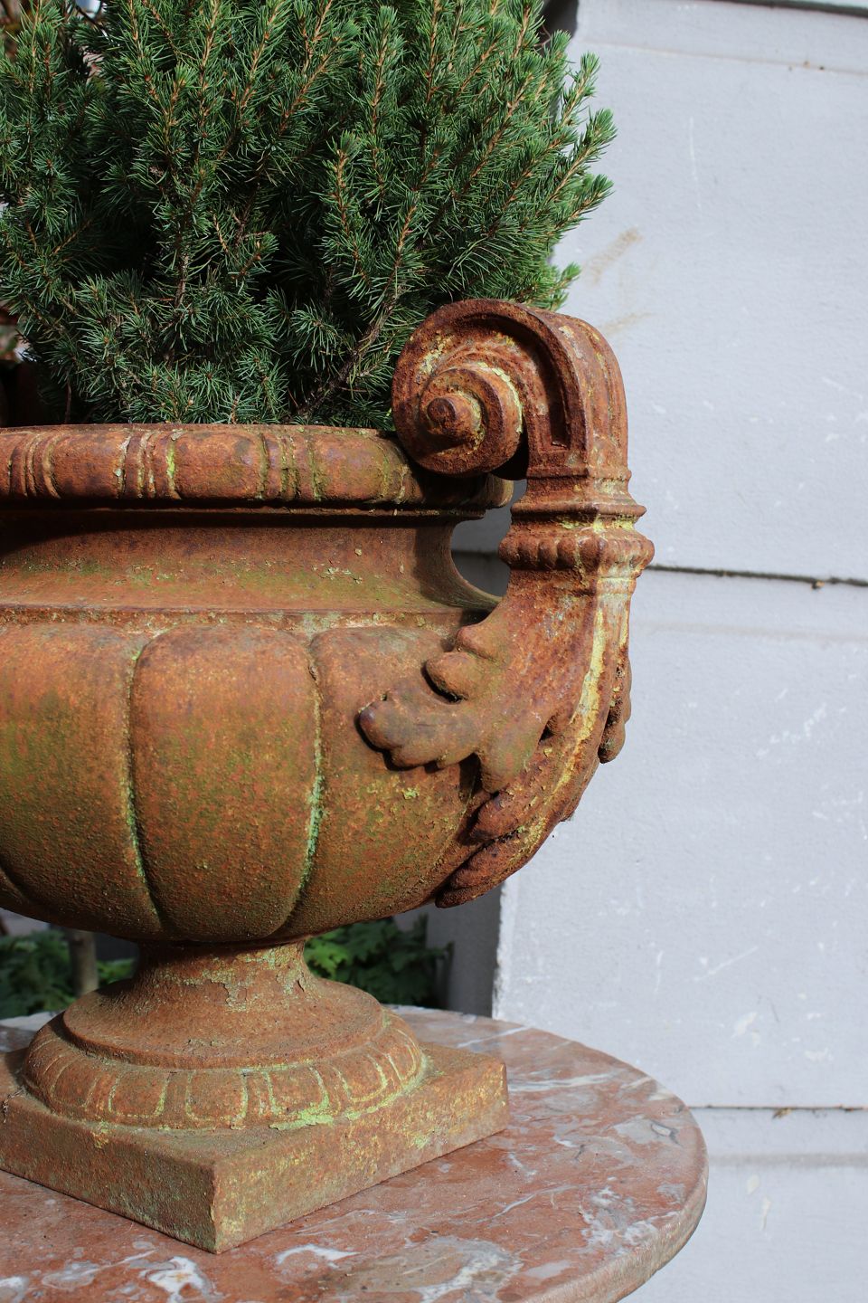 Store , franske 1800 tals jern krukker med hanke og en rigtig fin gammel patina. H: 41cm. Dia.: 40cm. B: med hanke 47cm.
