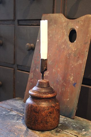 Antique, French candlestick in dark patinated bronze, decorated with 3 old white glass flowers...