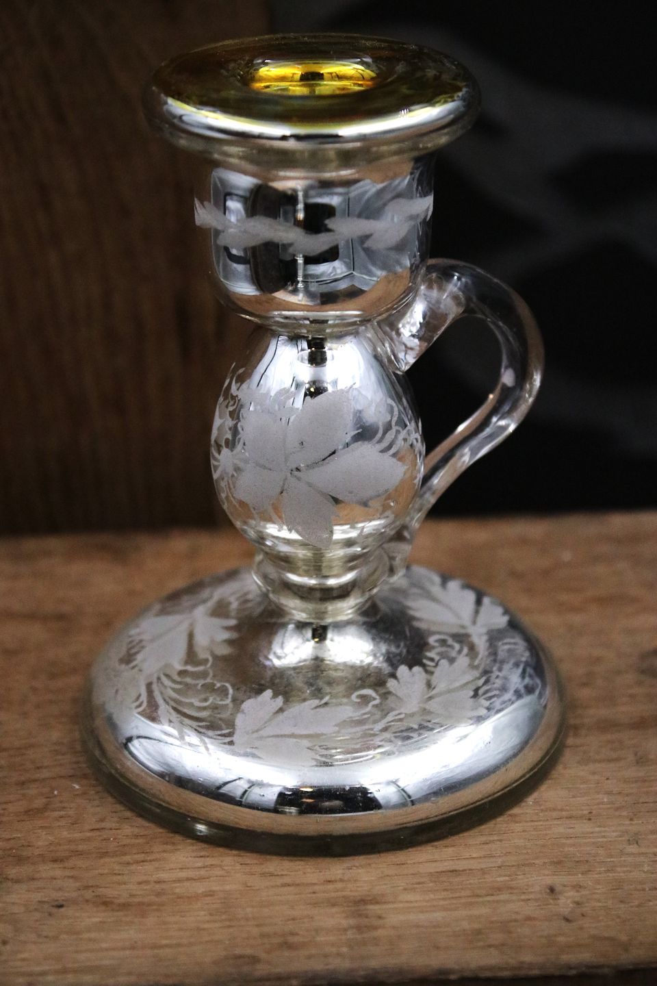(Mercury silver glass) with fine etched leaf vine decoration.