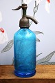 Decorative, rare French mini glass siphon from the early 1900s in turquoise blue with engraved writing on the side of the siphon