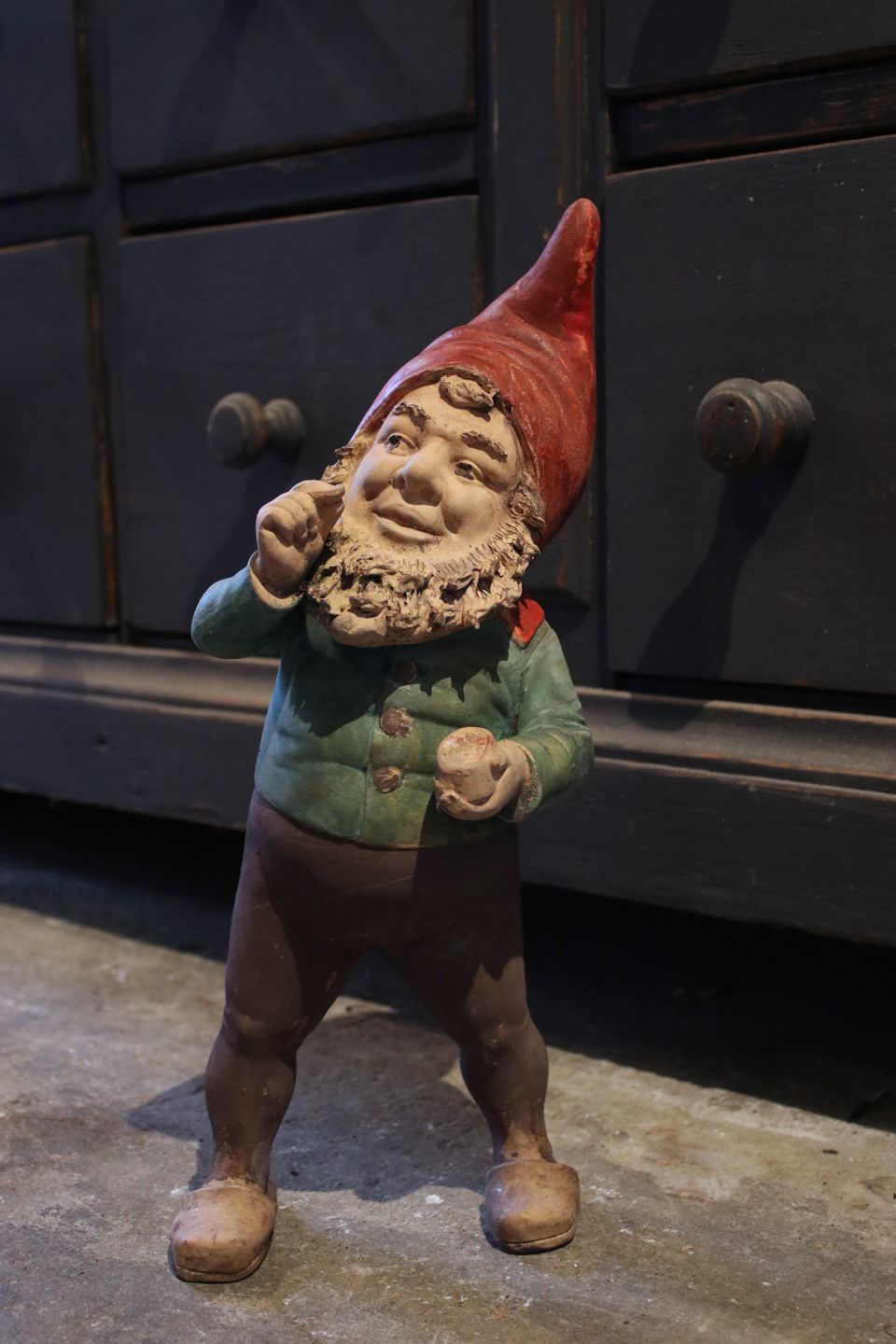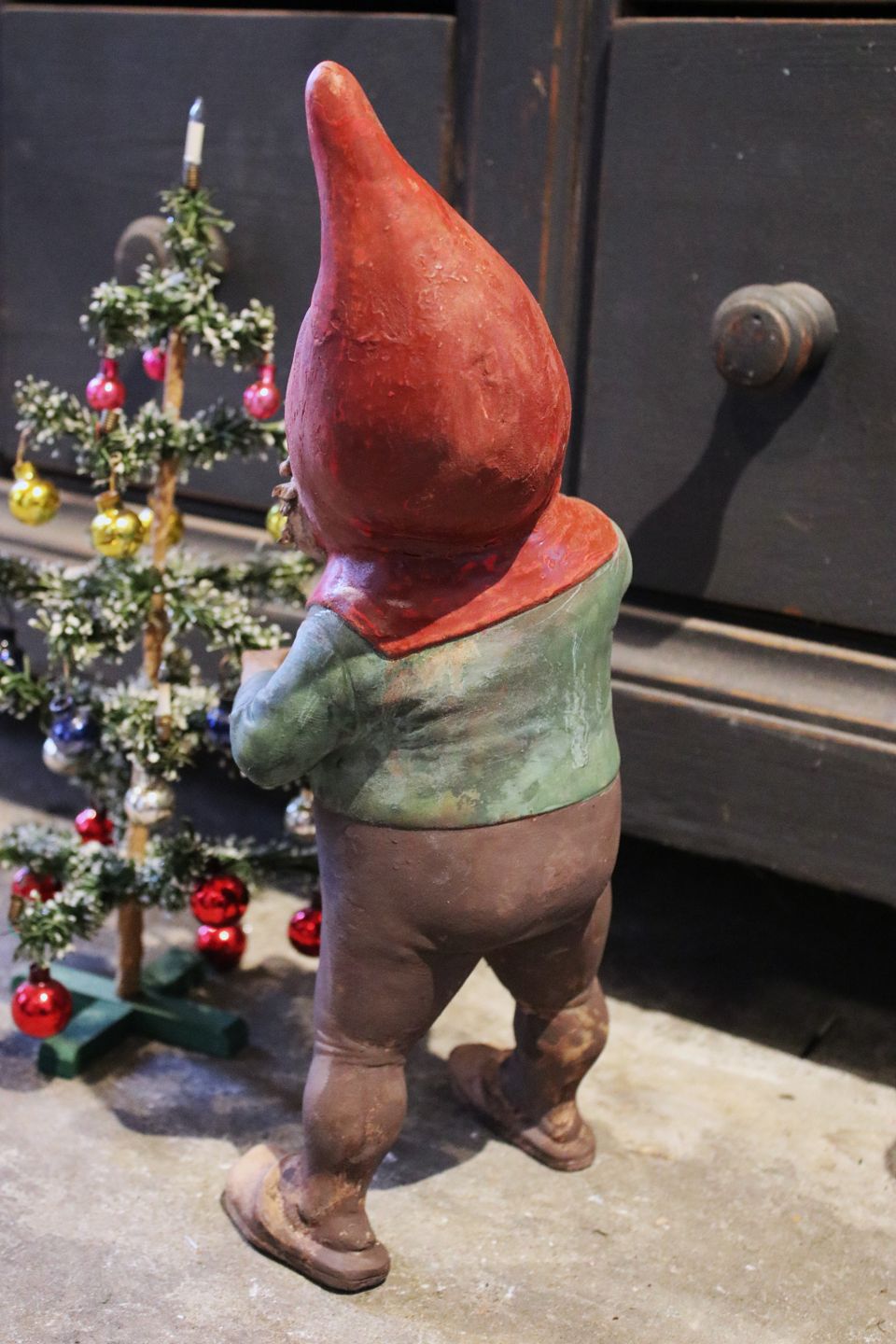 Antique terracotta gnome with old paint and a fine patina. Height: 36.5cm. Item number: Antik terrakotta nisse nr.1