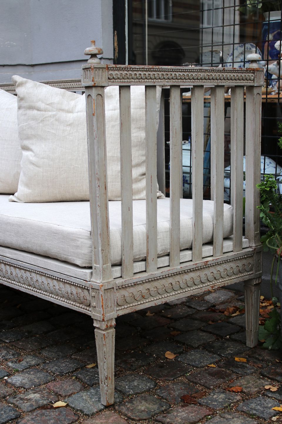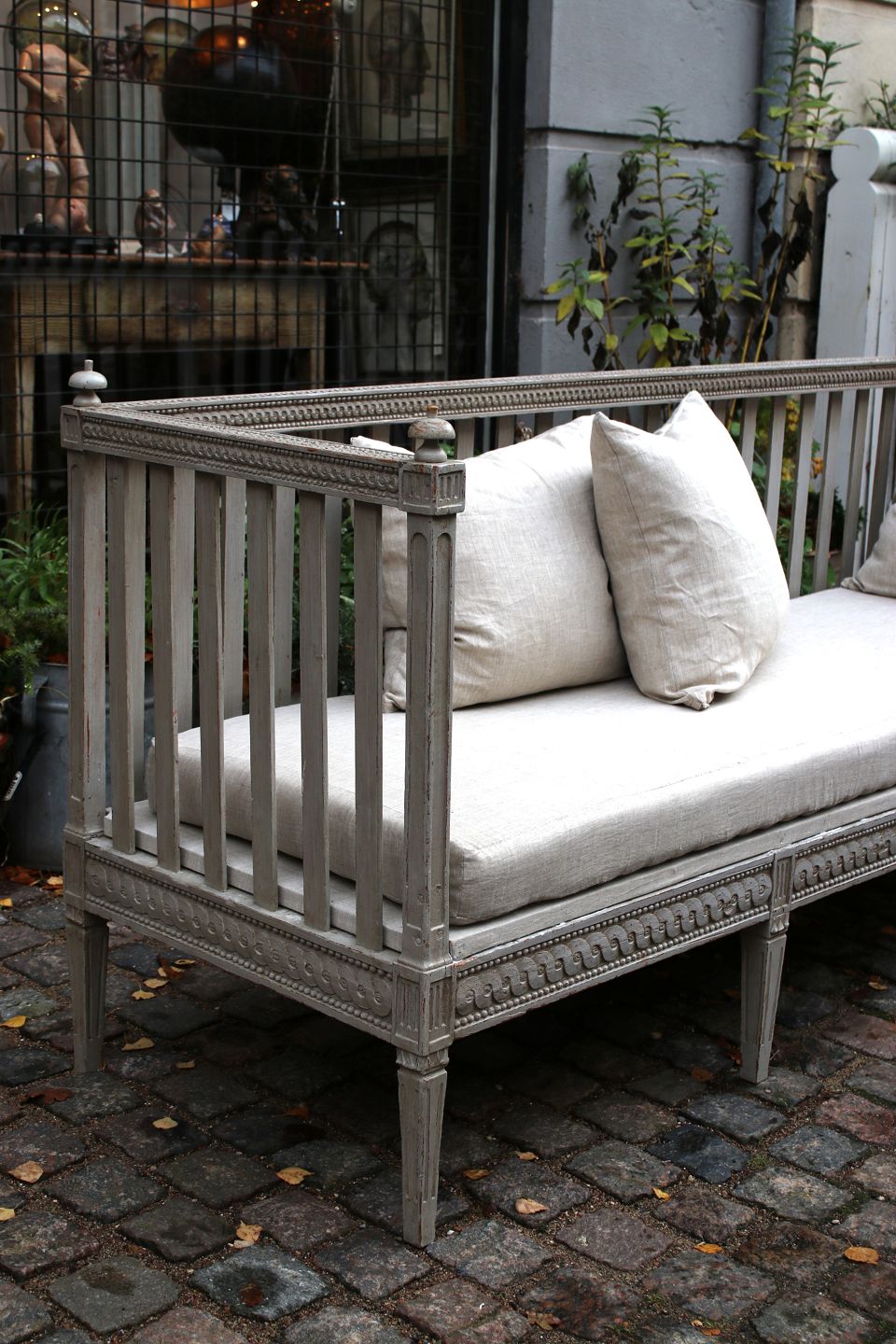 Gustaviansk svensk 1800 tals sofabænk i original grå farve