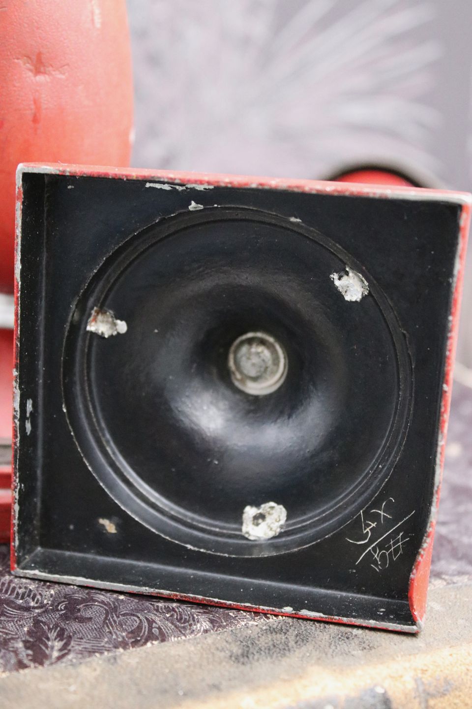 Et par Augustenborg tinstager fra omkring år 1840 med rød original bemaling. Højde: 21cm. Emne nummer: Augustenborg tinstager
