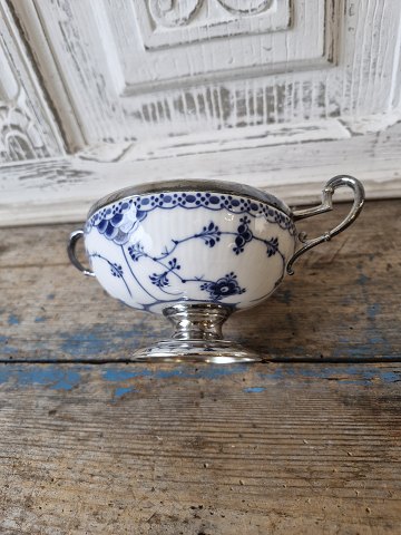 Royal Copenhagen Musselmalet halvblonde sukkerskål med forsølvet montering. 1. sortering Højde 9 cm. Mål 12 x 18,5 cm.