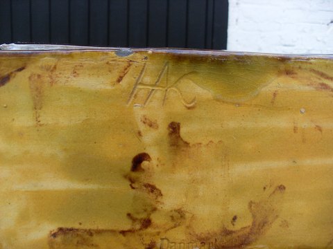 Kähler blomster kumme i brune nyancer med blå kohorns bemaling. Fremstår med små glasur afslag ellers meget flot stand. Mål 12x27cm. Højde 10cm.