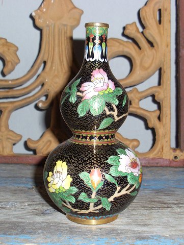 Kinesisk Cloisonne vase dekoreret med sommerfugl og blomster.