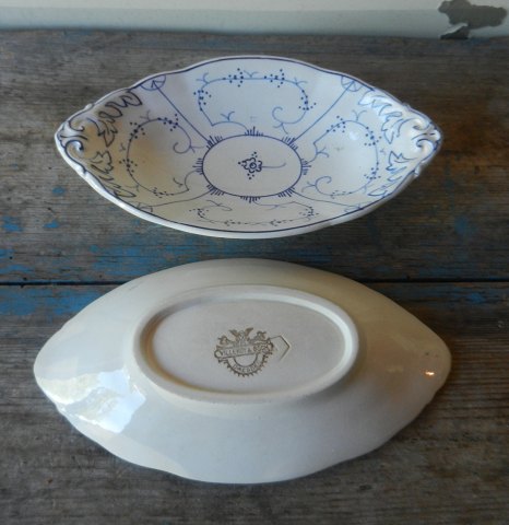 Villeroy & Boch, Musselmalet Fajance, bådformet skål. Perfekt til oliven og snacks. Mål 11x20cm.