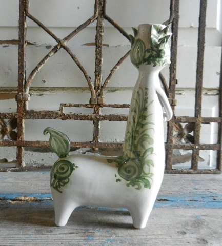Bjørn Wiinblad stage dekoreret i skøn grøn farve. Signeret WB, fra 1980, no. D.1 Højde 23,5cm. længde 14cm. Perfekt stand