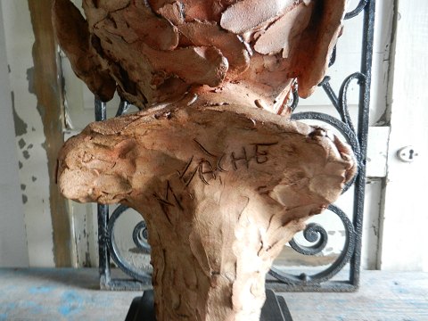 Massimo Facheris. Faun. Figur af terrakotta på sokkel af sortmalet træ. Sign. M. Fache. H. 47 cm. Mindre afslag. Massimo Facheris er en 53 årig italiensk skulptør bosiddende i Bergamo.