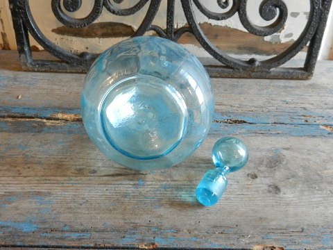 Søblå karaffel fra Fyens Glasværk 1890.