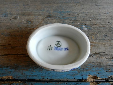 Royal Copenhagen Musselmalet riflet saltkar No. 195, 1. sort. Mål 6x8,5cm. Højde 3,5cm. Produceret mellem 1898-1923