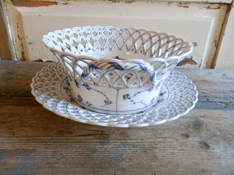 Royal Copenhagen Musselmalet helblonde frugtkurv med underfad