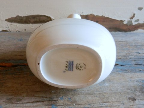 Karaffel med prop, dekoreret med blomst på den ene side og krone samt de tre bølger på den anden side.