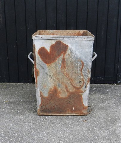 Stor gammel zink skraldespand med rå patina. Perfekt til et oliventræ! Mål 42x42cm. Højde 60cm.