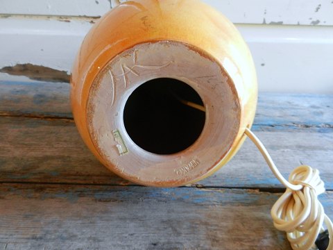 Skøn æggeformet Kähler bordlampe. Signeret HAK Danmark. Fremstår med et mikroskopisk glasurafslag, se billed. Højde incl. fatning 42cm.