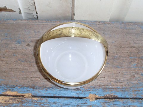 1800tals hvid opaline sukkerskål med messing hank med cisileringer.
