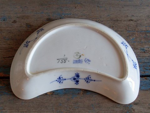 Royal Copenhagen Musselmalet riflet måneformet asiet No. 155, 2. sort. Produceret mellem 1923-35 Mål 13,5x22cm.