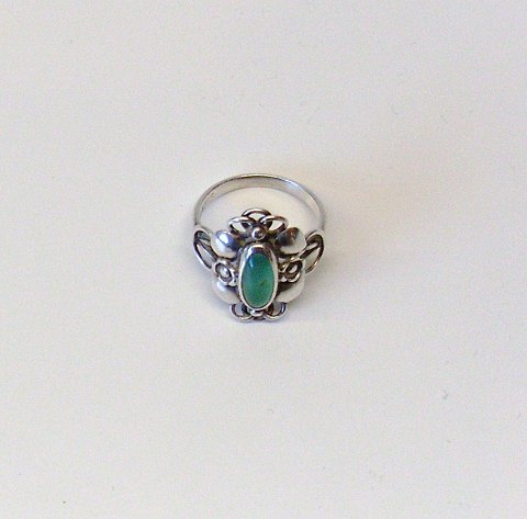 Smuk skønvirke sølv ring med agat. Stemplet H.J. 830s, Hans Jensen & Co 1899-1937. Størrelse 54.