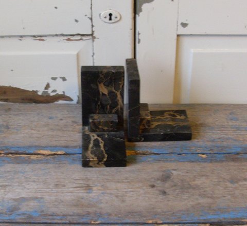 Par Art Deco bogstøtter i sortbroget marmor.