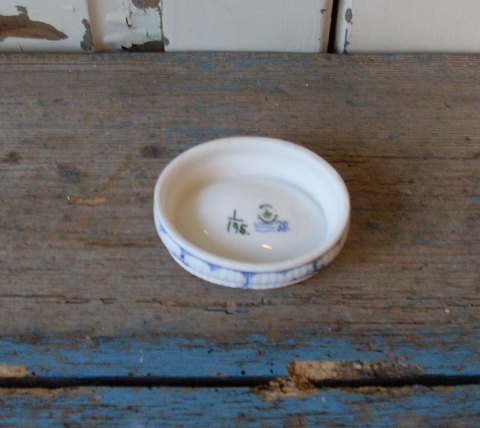 Royal Copenhagen Musselmalet riflet saltkar No. 195, 1. sort. Mål 6x8cm. Højde 3cm. Produceret mellem 1898-1923