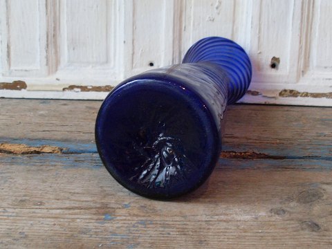 Zwibelglas/hyacintglas i mørkeblåt glas med skrå optiske striber. Fremstår med aflejringer indeni. Højde 20,5cm.
