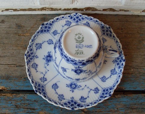 Royal Copenhagen Musselmalet helblonde kaffekop No. 1035 Mål på selve koppen: Højde 6cm. Diameter 7cm.
