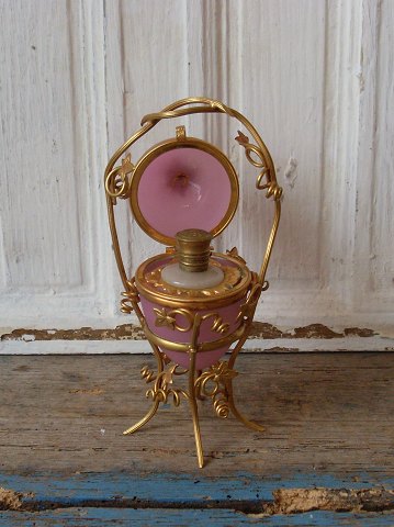 Smukt Art Nouveau parfume æg i lyserød opaline.