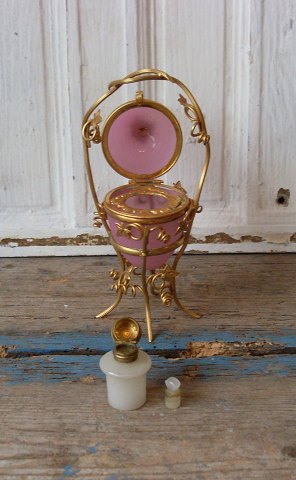 Smukt Art Nouveau parfume æg i lyserød opaline.
