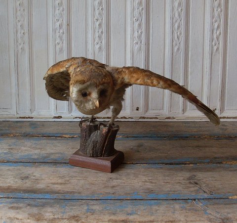 Udstoppet slør ugle med udbredte vinger.