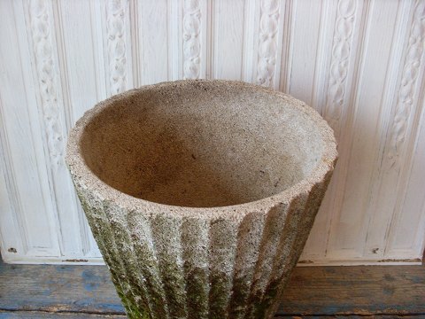 Stor riflet sandstenskrukke med lækker patina.