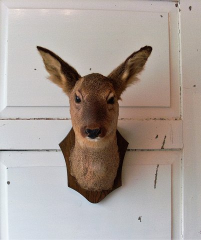 Hovedmonteret dådyr på plade. Fremstår i meget fin stand. Højde 40cm. Mål fra plade til snude 32cm.