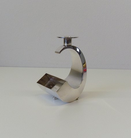 Poul Bang for Svend Toxværd C - formet lysestage til kertelys med plads til en æske tændstikker i foden. Højde 9,5cm. Stemplet STV, Poul Bang, 830s.