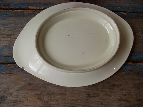 Cremefarvet fajance underfad til terrin Fremstår med lille afslag på undersiden - se billed. Mål 23,5x34cm.