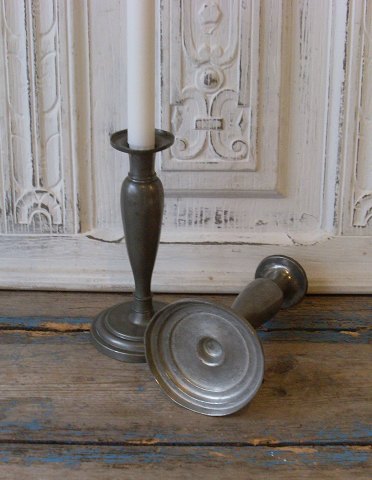 Par smukke franske tulipan formede tin stager fra 1800tallets midte. Fremstår med lette brugsspor Højde 20cm.