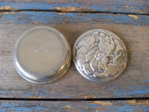 Hertz & Ballin skønvirke bonbonniere i tin fra 1919 Højde 5cm. Diameter 10,5cm. Stemplet: HB - 1919 - tin - Danmark