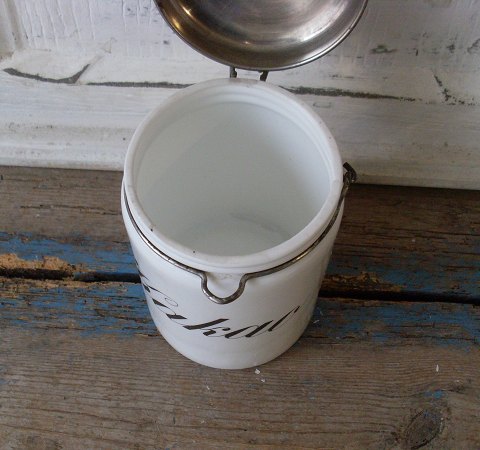 Gammel kakao dåse i mælkeglas