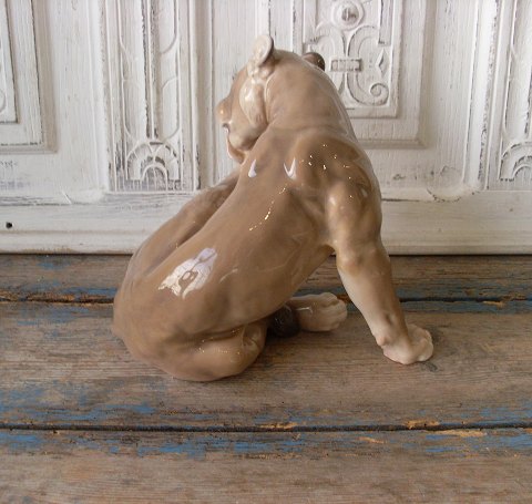 B&G figur, løvinde No. 2051, 1. sort. Produceret mellem 1915-48 Fremstår med skade - professionelt repareret - se billed. Højde 23,5 cm.