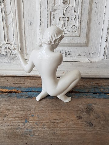 Arno Malinowski for B&G, Blanc de Chine figur af nøgen pige med blomst No. 2283, 2. sort. Højde 17 cm.